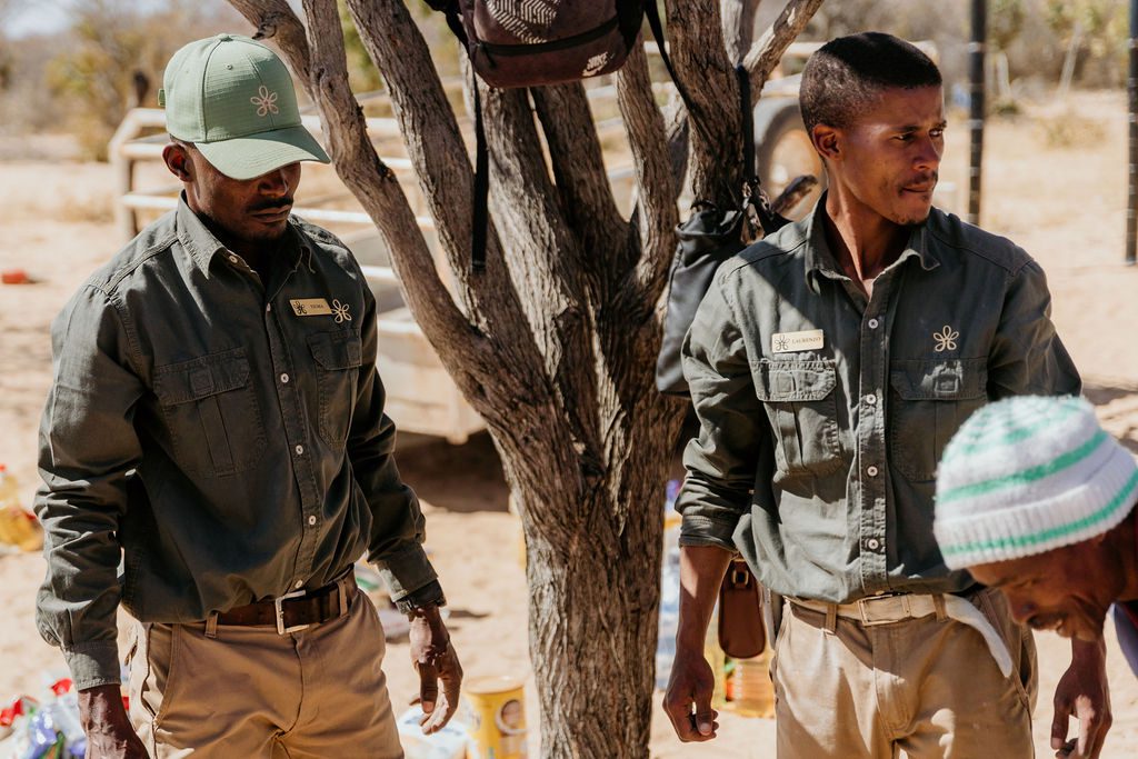 Using materials provided by Gmundner, a group of talented San artisans painted paper and ceramics with a variety of designs, plants, birds and animals, which we then purchased directly from the artisans to sell as part of the Gmundner Ceramics art collaboration. In addition to providing financial support to this community, Gmundner Lodge donated food and hygiene products over a two-month period to supplement their livelihoods during a season of low harvest.